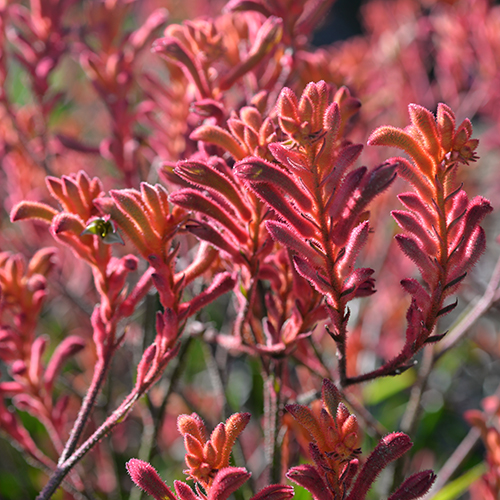 Bush Coral is an attractive medium height Kangaroo Paw with strong branched flower stems that contrast beautifully with green spreading foliage. With its vivid flower colour and high disease tolerance it is a very long lived variety that flowers year round. A perfect feature plant for any garden.