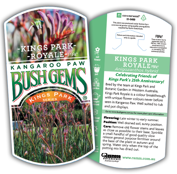 Unauthorised commercial propagation or any sale, conditioning, export, import or stocking of propagating material of Kings Park Royale is an infringement under the Plant Breeders Rights Act, 1994. This includes tissue culture, young plants, pots and cut flowers.