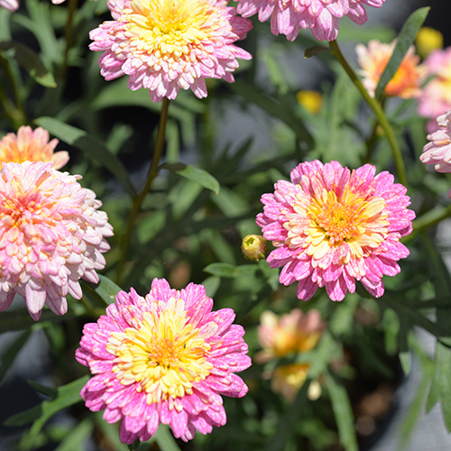 Pastel Pink is a delightful variety offering blush pink, double flowers with a vibrant yellow centre.