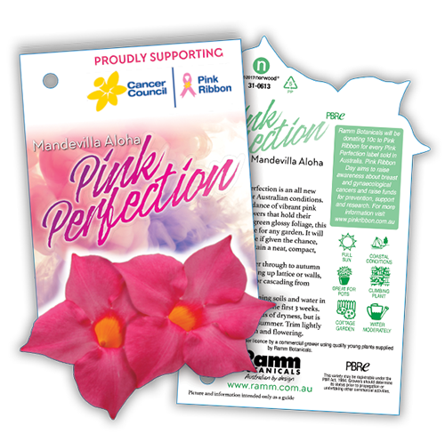 Aloha Pink Perfection is bred for Australian conditions, producing an abundance of vibrant pink trumpet shaped flowers that hold their colour against glossy dark green foliage. This variety is noticeably more compact when young and has a much higher flower count than most Mandevilla on the market.