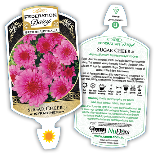Sugar Cheer is a compact, prolific and early flowering Marguerite Daisy. This versatile variety is equally suited to patio pots or as a garden specimen. Sugar Cheer produces masses of double, brilliant dark-pink blooms.