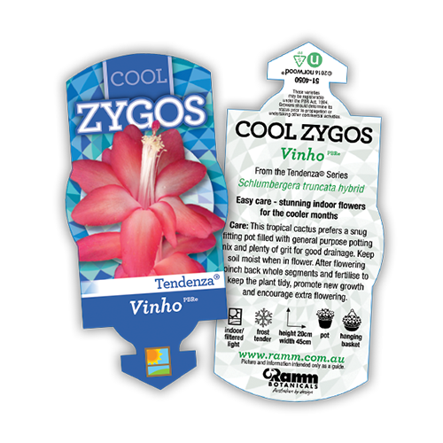 Zygocactus are well known for their low maintenance qualities and bright, bountiful flowering. The perfect plant for table decorations or hanging baskets. Try choosing a variety with contrasting or complementing colours to the colour scheme of your chosen room. Perhaps multi-plant different varieties to create an even more interesting display. The Cool Zygo’s range will produce their exquisite, brightly coloured flowers during autumn and winter.